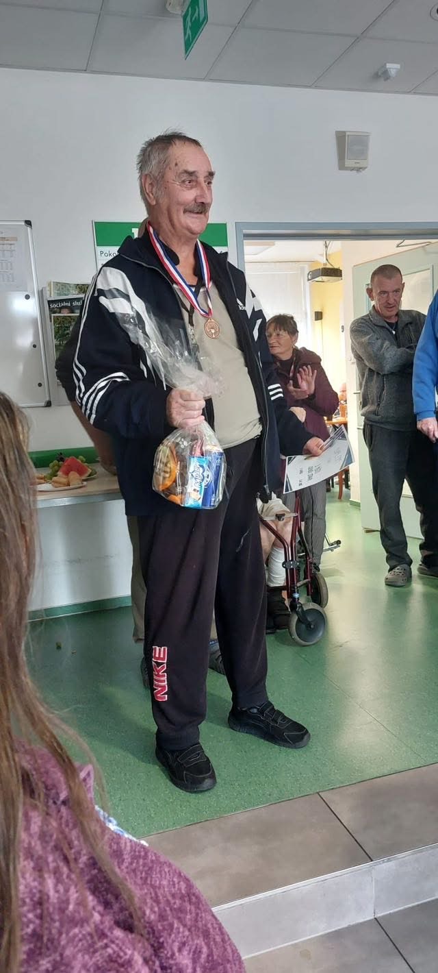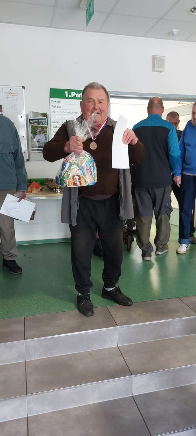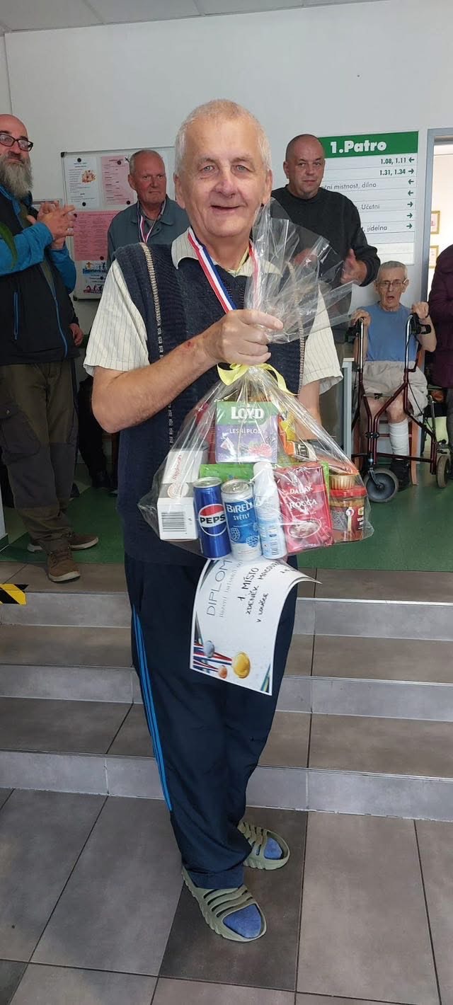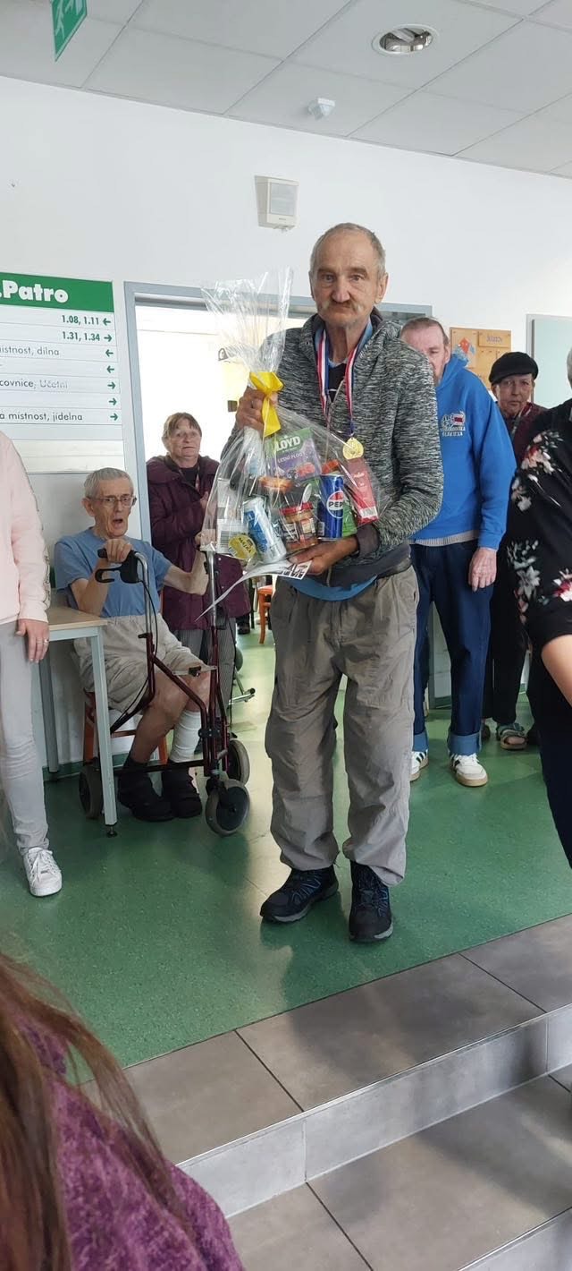 Mezi vítěze patří i naši klienti a to pan Josef za 🥇 místo v Pétanque, pan Zdeněk za 🥇místo v Hodu míčků do kalhot a pan Petr za 🥈místo v Pétanque.